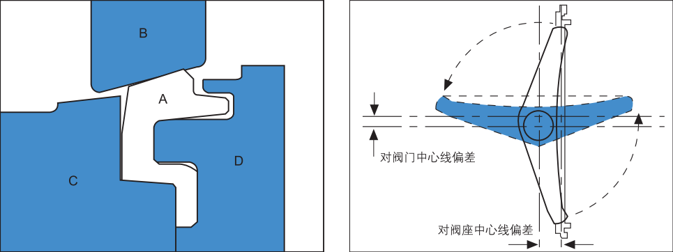 在開啟和處于中間位置時閥座與蝶板不發生接觸